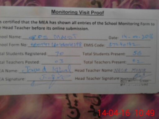 | Certified that this School was Inspected by the Undersigned MEA/DMO Today and the Information Stated Above is as Per Record. | |||||