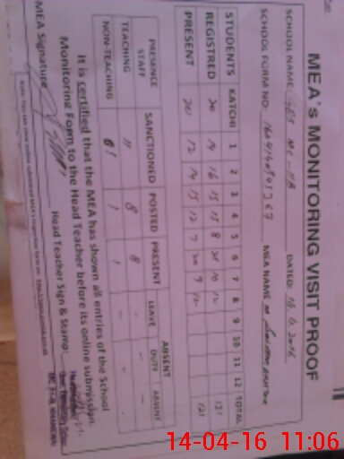 | Attendance Register | Head Teacher | MEA with School | Visit Proof |