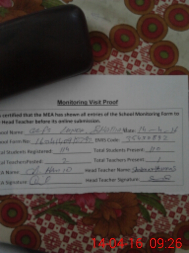 | Attendance Register | Head Teacher | MEA with School | Visit Proof |