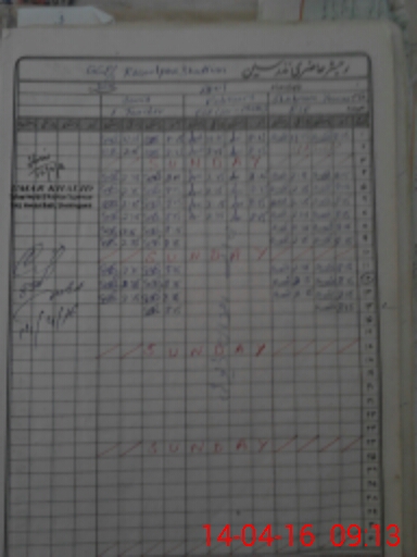 | CNIC | Full Name | Designation | R/C | Absence During Last Calender Month |