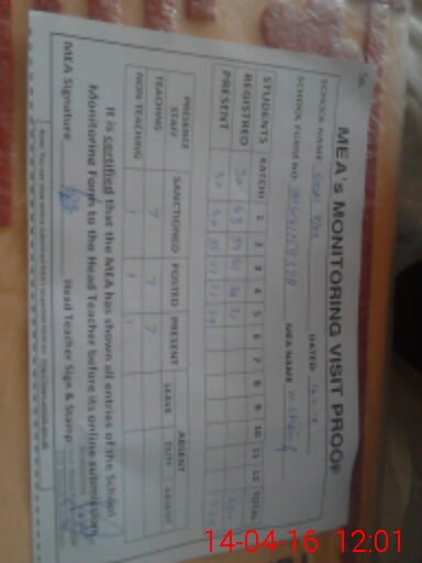 | Attendance Register | Head Teacher | MEA with School | Visit Proof |