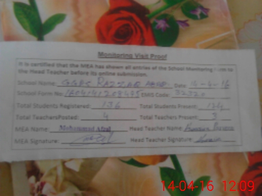 | EMIS Code: 32320594 | Name of School: GGPS RAZZAQ ABAD | |||