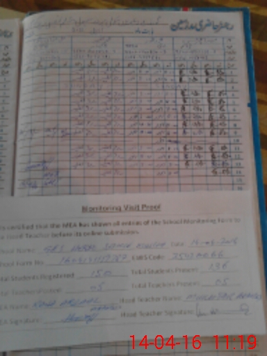 | Attendance Register | Head Teacher | MEA with School | Visit Proof |