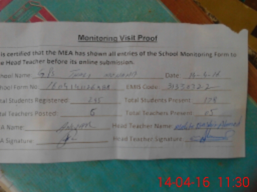 | Attendance Register | Head Teacher | MEA with School | Visit Proof |