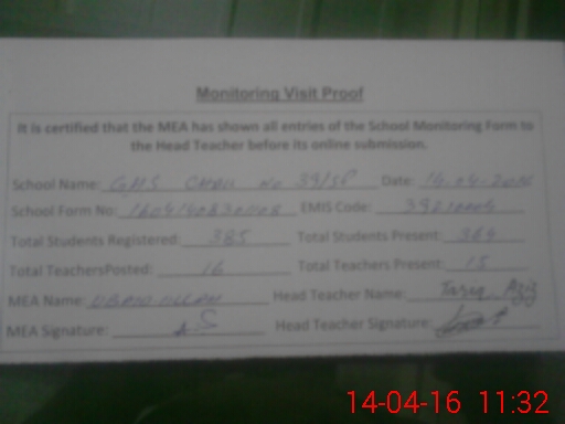 | EMIS Code: 39210004 | Name of School: GHS 39/S.P | |||