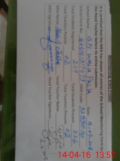 | EMIS Code: 32330141 | Name of School: GPS WALIA PALIA | |||