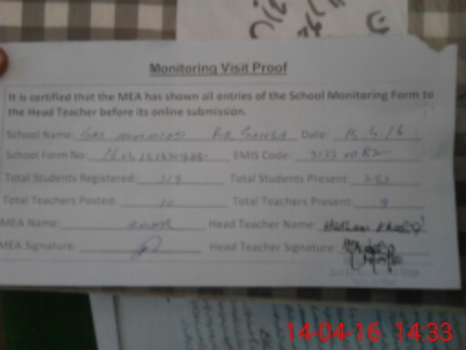 | Certified that this School was Inspected by the Undersigned MEA/DMO Today and the Information Stated Above is as Per Record. | |||||