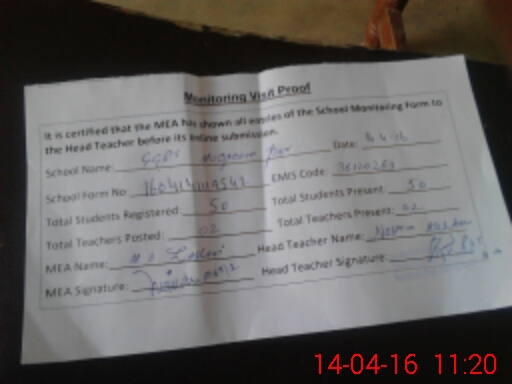 | Attendance Register | Head Teacher | MEA with School | Visit Proof |