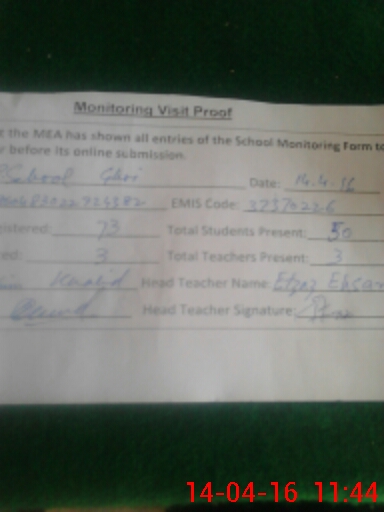 | Attendance Register | Head Teacher | MEA with School | Visit Proof |