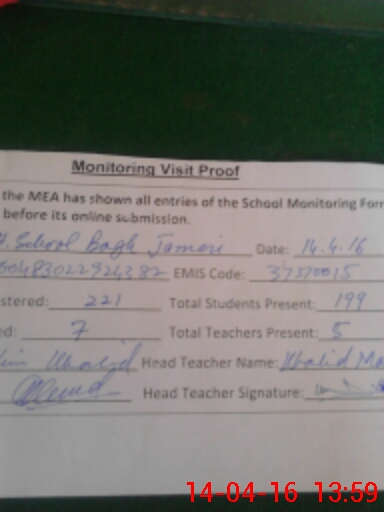 | EMIS Code: 37370015 | Name of School: GHS BAGH JAMERI | |||