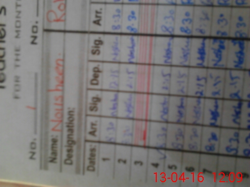 | Monitoring Date: 13-04-2016 | Start Time: 13-04-2016 11:32 AM | End Time: 13-04-2016 12:14 PM | Name of MEA: M.Ak**** Al**** | |
