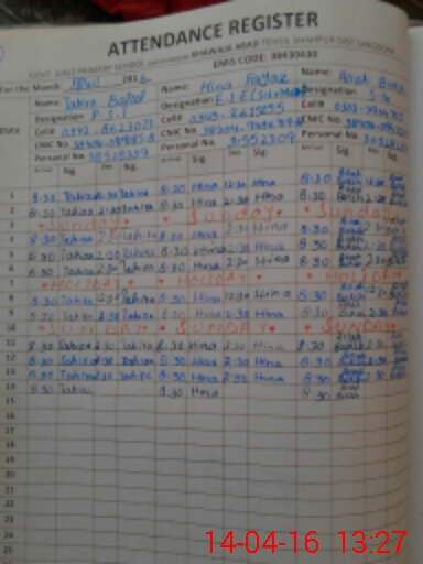 | Name: TA**** BA**** Designation: (School Headmaster's/Headmistress's) EST Phone/Cell Number: 03**** |