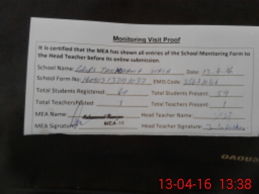 | Certified that this School was Inspected by the Undersigned MEA/DMO Today and the Information Stated Above is as Per Record. | |||||