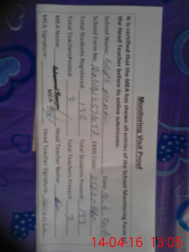 | Certified that this School was Inspected by the Undersigned MEA/DMO Today and the Information Stated Above is as Per Record. | |||||