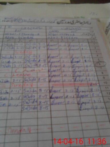 | CNIC | Full Name | Designation | R/C | Absence During Last Calender Month |