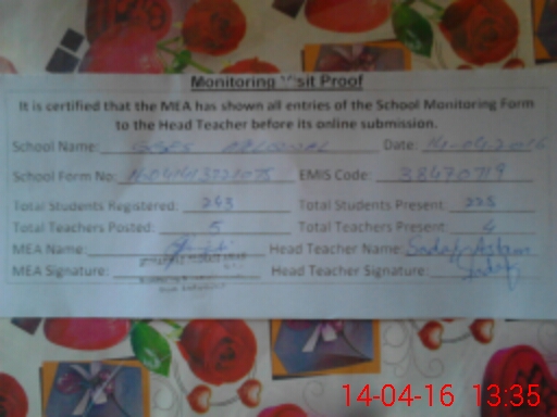 | Certified that this School was Inspected by the Undersigned MEA/DMO Today and the Information Stated Above is as Per Record. | |||||