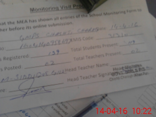 | EMIS Code: 31310598 | Name of School: GMPS CHISHTI CHARAGH | |||