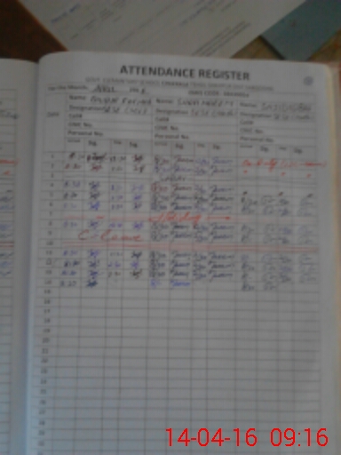 | CNIC | Full Name | Designation | R/C | Absence During Last Calender Month |