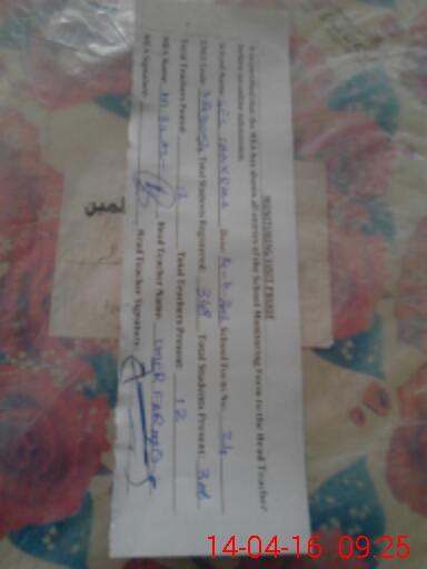 | Attendance Register | Head Teacher | MEA with School | Visit Proof |