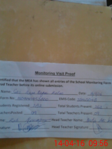 | Certified that this School was Inspected by the Undersigned MEA/DMO Today and the Information Stated Above is as Per Record. | |||||