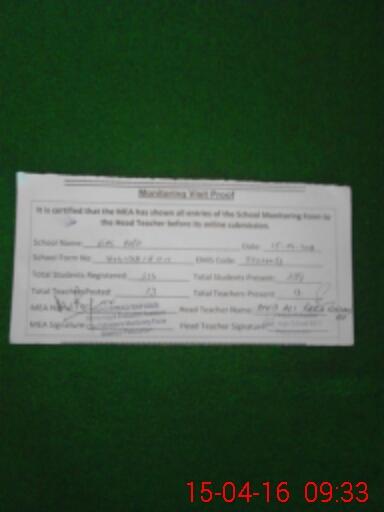 | Certified that this School was Inspected by the Undersigned MEA/DMO Today and the Information Stated Above is as Per Record. | |||||