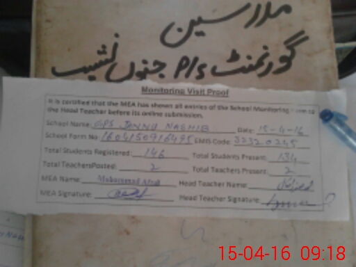 | EMIS Code: 32320245 | Name of School: GPS JANNU NASHAIB | |||