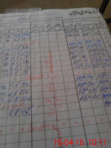 | CNIC | Full Name | Designation | R/C | Absence During Last Calender Month |