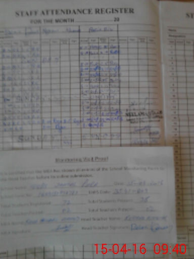 | Attendance Register | Head Teacher | MEA with School | Visit Proof |