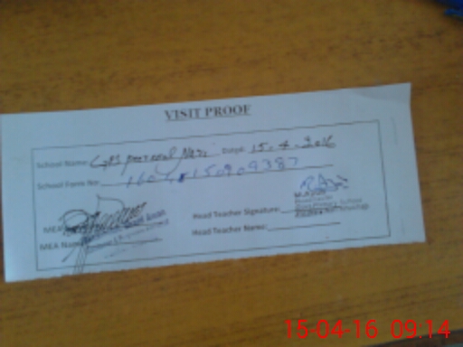 | Attendance Register | Head Teacher | MEA with School | Visit Proof |