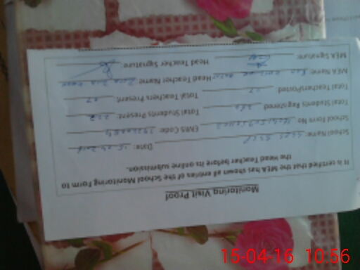 | Attendance Register | Head Teacher | MEA with School | Visit Proof |