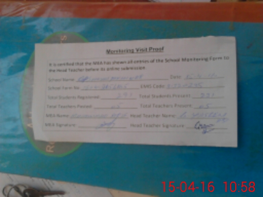 | Attendance Register | Head Teacher | MEA with School | Visit Proof |