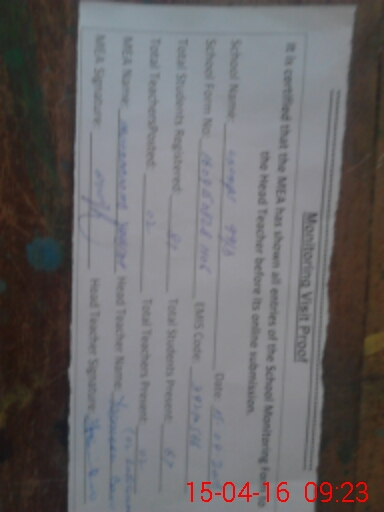 | Certified that this School was Inspected by the Undersigned MEA/DMO Today and the Information Stated Above is as Per Record. | |||||