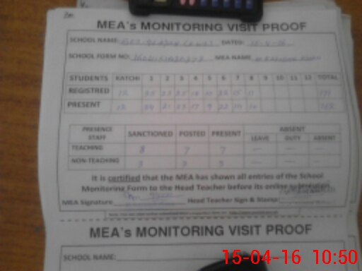 | Attendance Register | Head Teacher | MEA with School | Visit Proof |