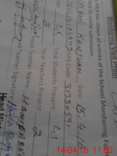 | Attendance Register | Head Teacher | MEA with School | Visit Proof |