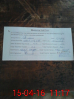 | Attendance Register | Head Teacher | MEA with School | Visit Proof |