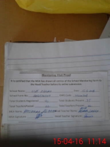 | Attendance Register | Head Teacher | MEA with School | Visit Proof |