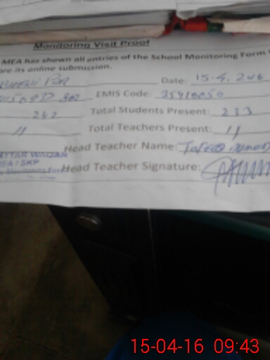 | Certified that this School was Inspected by the Undersigned MEA/DMO Today and the Information Stated Above is as Per Record. | |||||