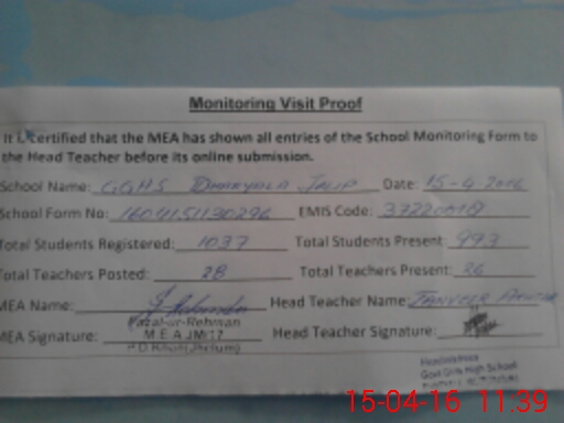 | EMIS Code: 37220018 | Name of School: GGHS DHARIALA JALIB | |||