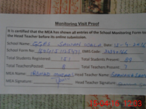 | EMIS Code: 32340166 | Name of School: GGES SAWAN WALA | |||