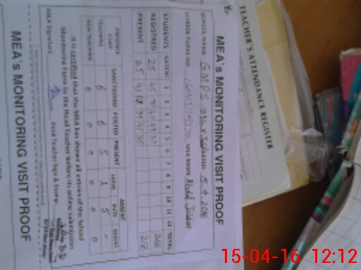 | Attendance Register | Head Teacher | MEA with School | Visit Proof |