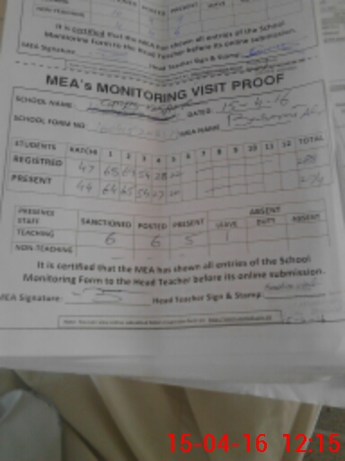 | Attendance Register | Head Teacher | MEA with School | Visit Proof |