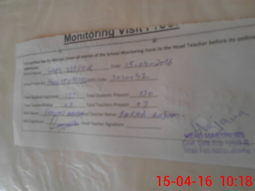 | Attendance Register | Head Teacher | MEA with School | Visit Proof |