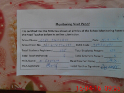 | Certified that this School was Inspected by the Undersigned MEA/DMO Today and the Information Stated Above is as Per Record. | |||||