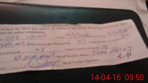 | Attendance Register | Head Teacher | MEA with School | Visit Proof |