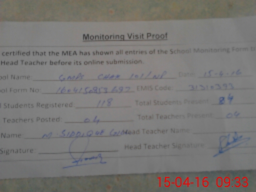 | Attendance Register | Head Teacher | MEA with School | Visit Proof |