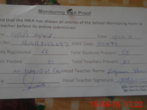 | EMIS Code: 31310394 | Name of School: GGES CHAK 110/NP | |||