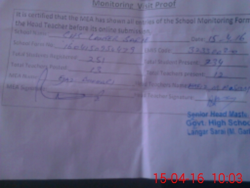| EMIS Code: 32330020 | Name of School: GHS LANGER SARAI | |||