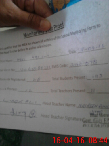 | Certified that this School was Inspected by the Undersigned MEA/DMO Today and the Information Stated Above is as Per Record. | |||||