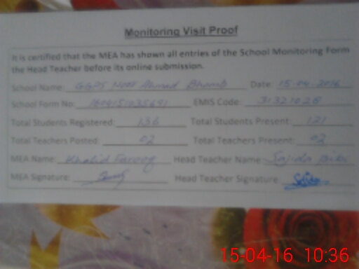 | EMIS Code: 31321028 | Name of School: GGPS NOOR AHMED BHOMB | |||