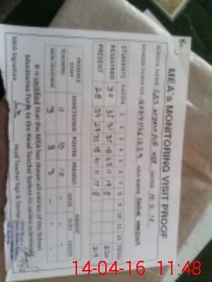 | Monitoring Date: 14-04-2016 | Start Time: 14-04-2016 11:06 AM | End Time: 14-04-2016 11:49 AM | Name of MEA: Z.**** SA**** MA**** | |